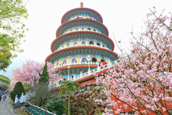 - Đền Vô Cực Thiên Nguyên Cung – một trong những điểm ngắm hoa đào ấn tượng nhất Đài Loan mỗi độ xuân về. Quý khách sẽ chinh phục con đường bậc thang đỏ rực uốn lượn giữa đồi hoa, nơi được ví như “chốn bồng lai giữa nhân gian” khi hoa đào nở rộ (dự kiến từ giữa tháng 2 – giữa tháng 3 tùy thời tiết). Đây cũng là thời điểm lý tưởng để du khách chụp hình lưu niệm với khung cảnh mùa xuân rực rỡ khó quên.